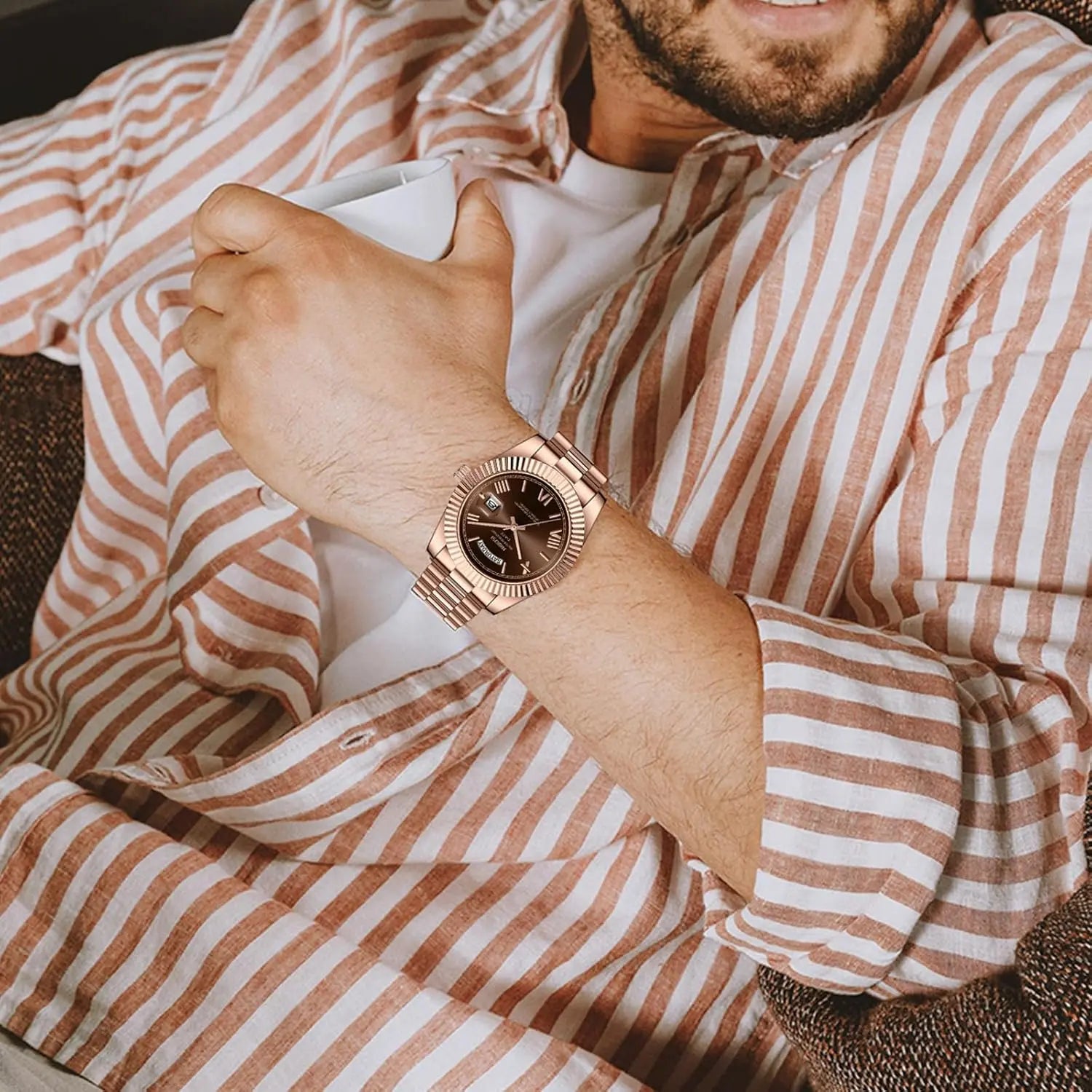 In addition to style and durability, these watches boast a day-date display function. This practical feature helps you keep track of time and dates effortlessly, which is perfect for busy individuals who need to stay organized. With just a quick glance at your wrist, you can check the current date without pulling out your phone. This combination of aesthetics and utility makes our men watches a smart choice for anyone looking to elevate their accessory game.