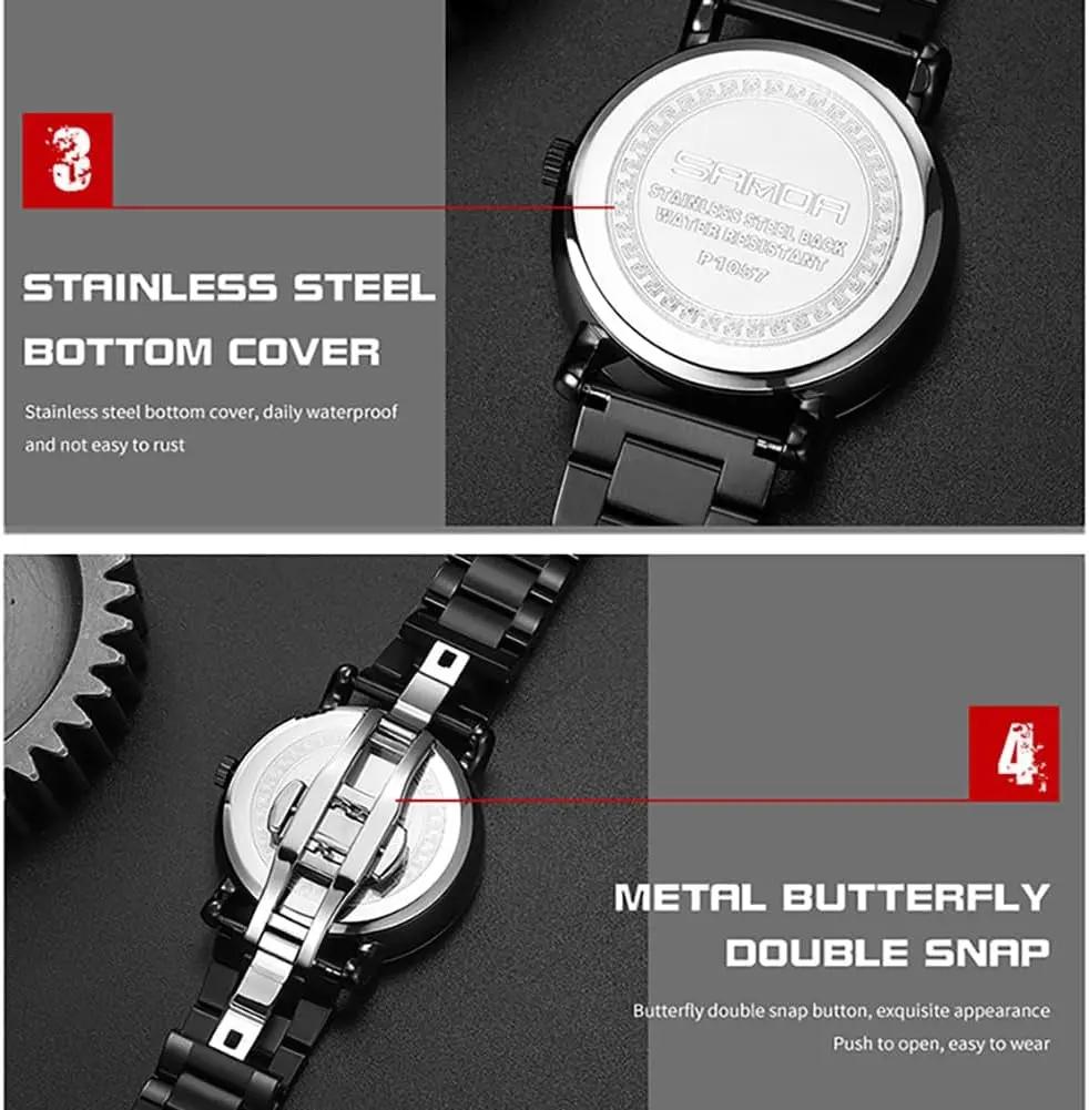- This elegant watch comes with a customized stainless steel fully polished watch strap, which is comfortable and breathable without fear of sweating.