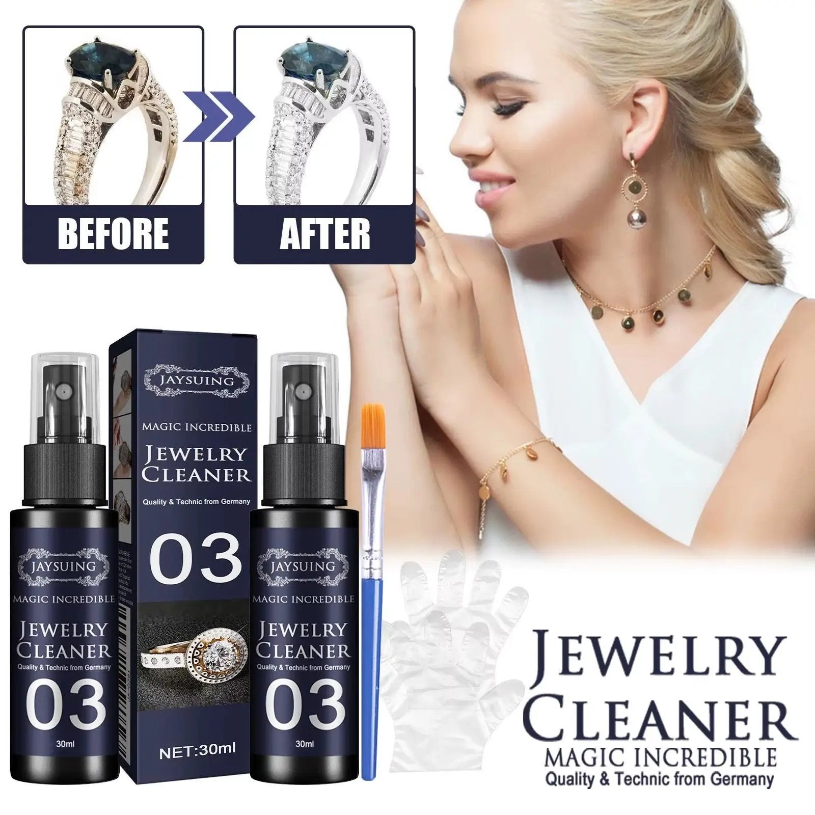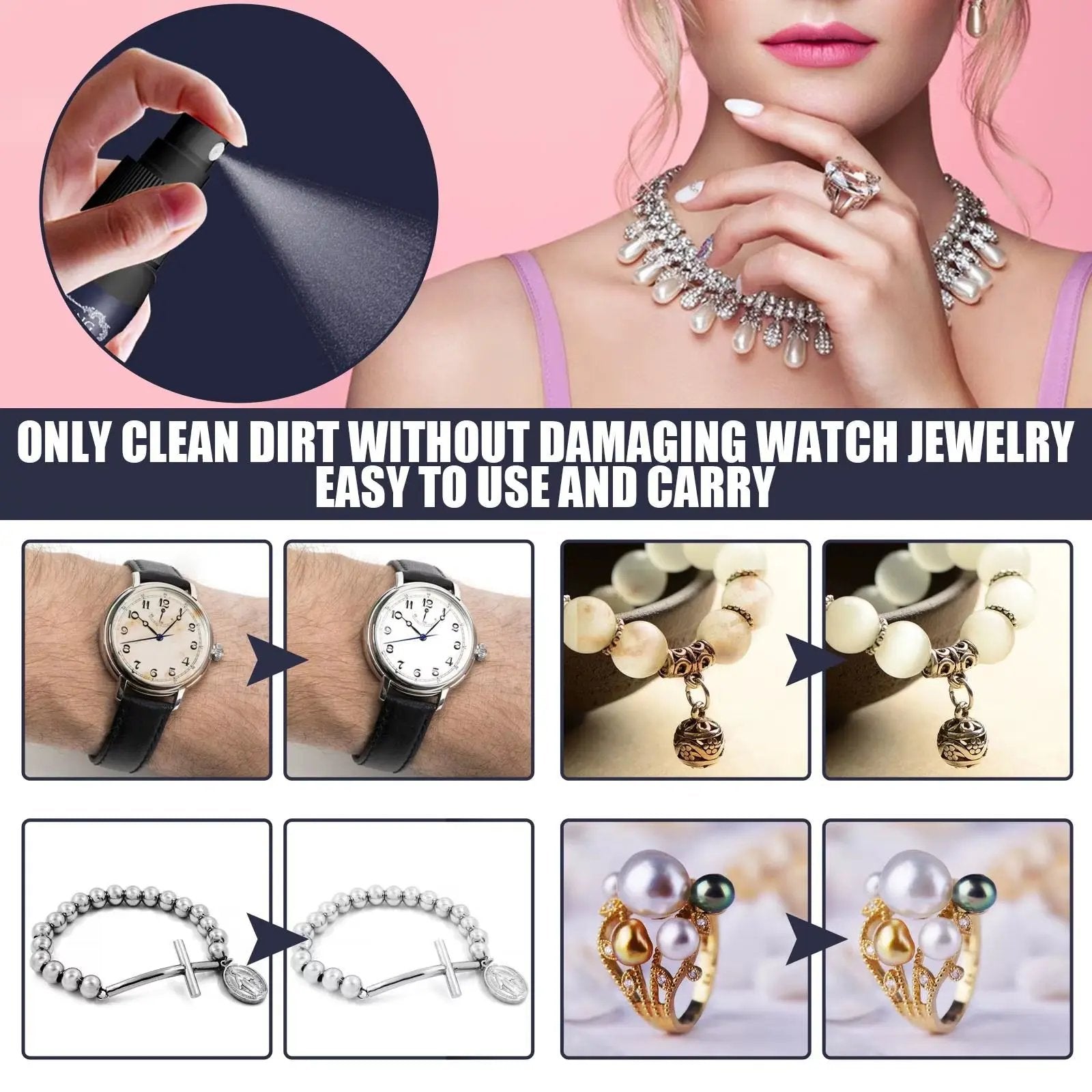 Jewelry Cleaner Cleaning Solution Tarnish Remover Jewelry Detergent Diamonds Gold Jewelry Cleaning Liquid Polishing Spray Kits